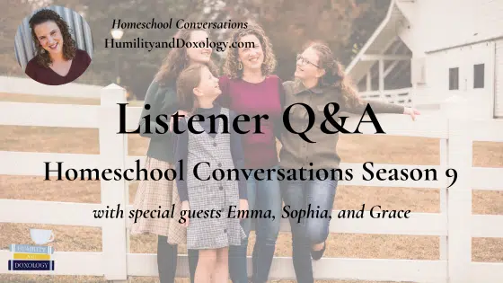 Come chat with us! Join me in a series of Homeschool Conversations with Humility and Doxology: interviews with real-life homeschool moms, dads, and other educators on all sorts of topics that affect our lives as homeschool parents. Listen on your favorite podcast player, or check out the videos on YouTube.
